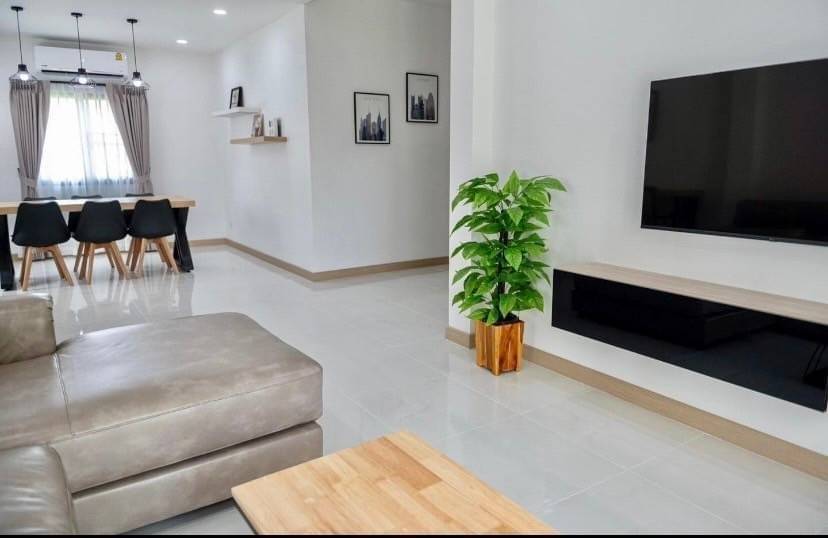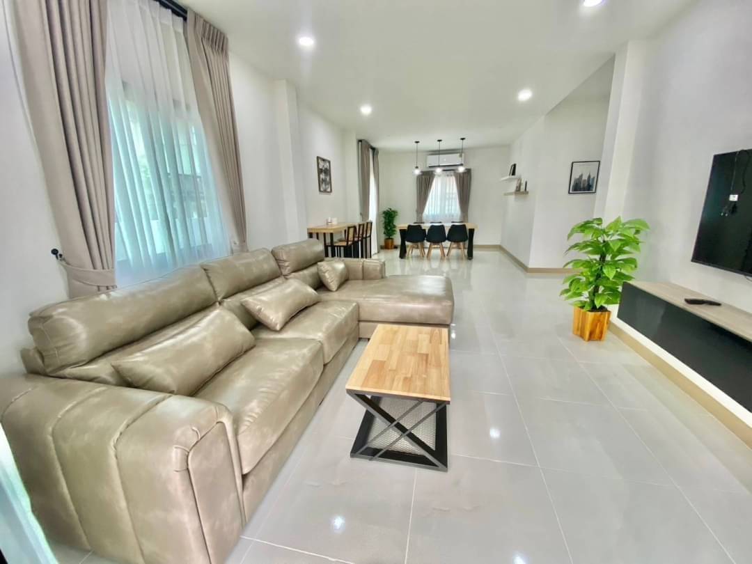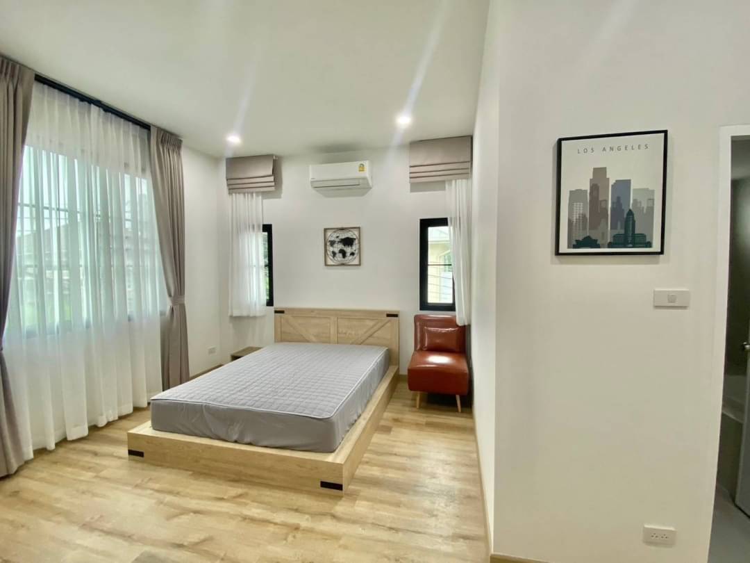 新装修的房子出租 租金40,000泰铢/月 5间卧室,4间浴室(2间带独立浴室,1间有浴缸) 停车位2个(小车可停2-4辆) 按照图片配备家具 遥控大门 提供洗衣机 ***不允许养宠物,租期至少1年 ***目前装饰了4间卧室 ***位于清迈View Doi项目(无公共管理费用),靠近Kad Farang和多所国际学校