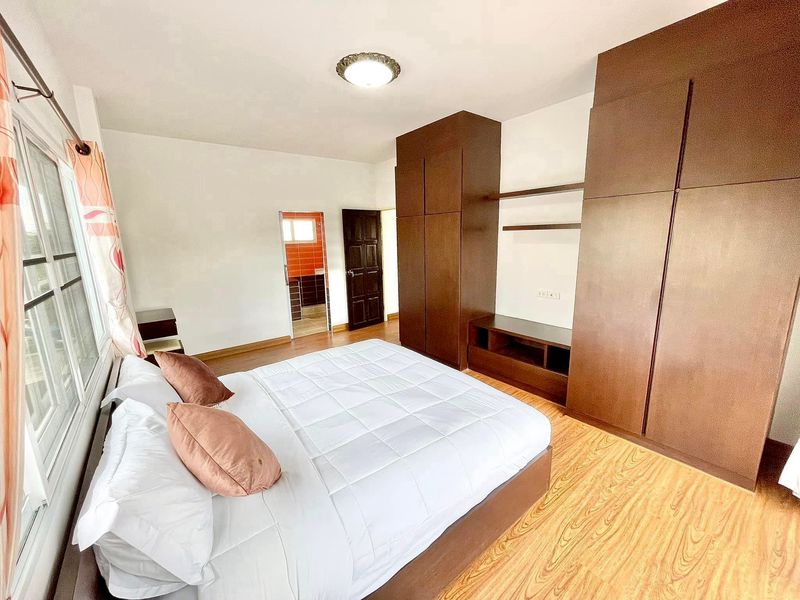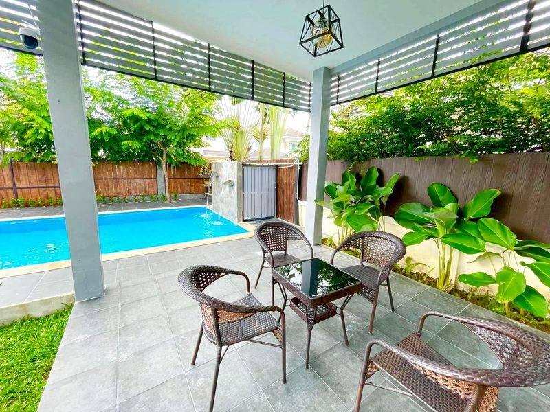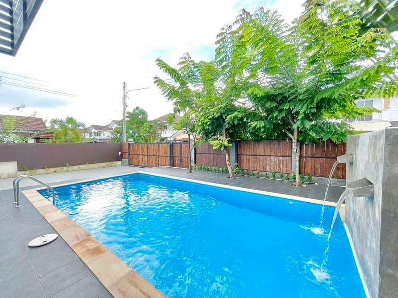 🏡 **清迈泳池别墅出售 / 出租 | 三环路旁 San Kamphaeng 区** 💰 **租金:55,000 泰铢 / 月** (已包含泳池维护费和物业费 5,000 泰铢,**不含中介费**) 🌱 **房屋信息** * 4 间卧室 * 3 间浴室 * 1 间厨房 * 1 间餐厅 * 1 间客厅 * 全套家具齐全 🔌 **家电配置** * 5 台空调 * 4 台热水器 * 洗衣机 * 冰箱 * 55 英寸电视(全部全新) * 6 人餐桌 * 沙发 * 全屋纱窗 * 电动遥控大门 🏡 **房屋面积** * 土地面积:111 平方哇 * 使用面积约:320 平方米 * 房屋四周已铺水泥地面 * 后院通道已加盖屋顶 * 车库地面铺设瓷砖 * 房屋周围空间宽敞整洁 * 房屋朝北,不热凉爽 * 私人泳池带瀑布水景,环境非常放松 * 前院花园设有休闲凉亭 📍 **位置优势** * 距离 San Kamphaeng Louis 路口仅 1 公里 * 紧邻 Ornsirin 3 小区 * 距离 Msports 高尔夫球场 1 公里 * 距离 Central Festival 清迈 10 分钟车程 * 位于 **Thanaporn Lake Home 小区** * 附近有 3 个加油站 * 附近有 4 家 7-Eleven * 周边餐厅众多,生活便利 * 位于清迈三环路旁 * 小区安静安全,有大门和安保 * 紧邻主路,出入方便 * 靠近市场和 Lotus 超市